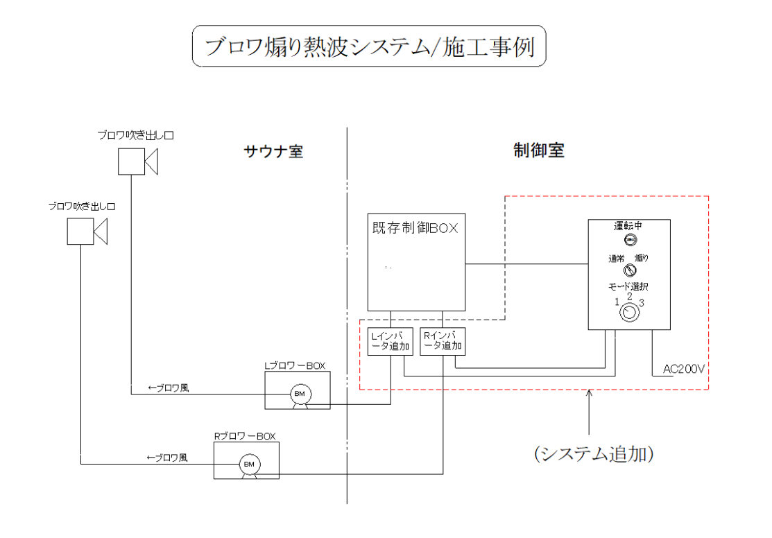 そこで今回、既存設備を活かしながらブロア制御による熱波環境の構築を行いました。